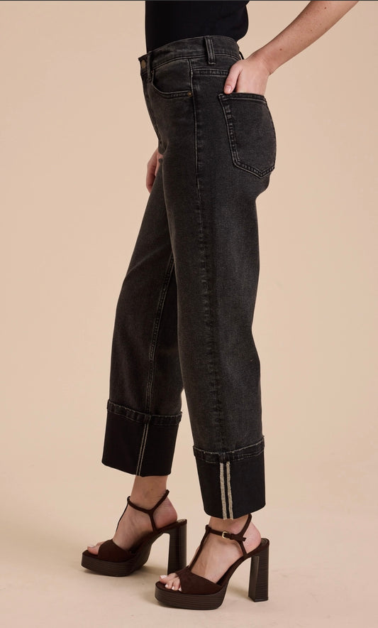 Cuffed Borrom Black Denim Pants