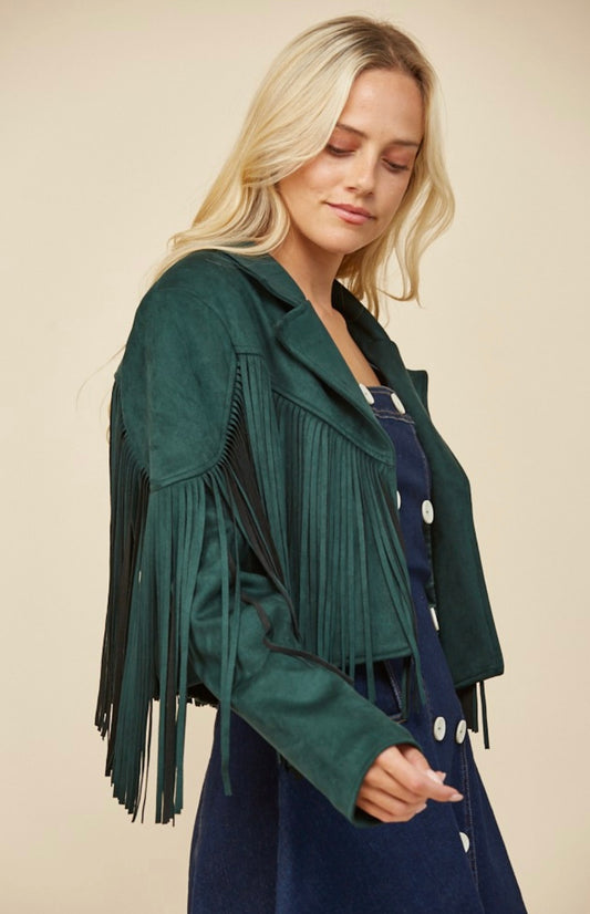 Boho Fringed Faux Suede Jacket - Hunter Green